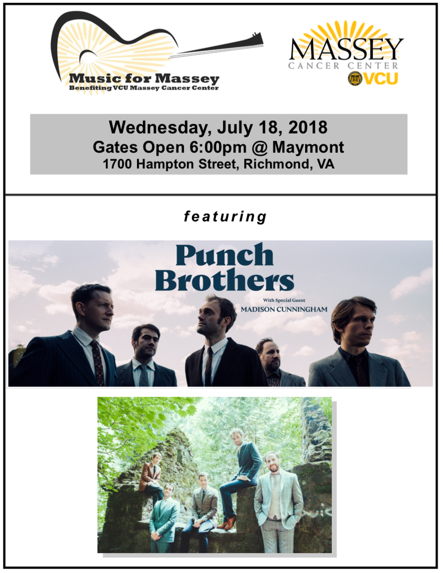Join us on Wednesday, July 18 at Maymont starting at 6 p.m. for a concert benefiting VCU Massey Cancer Center and featuring The Punch Brothers! For details or to purchase tickets, click here: